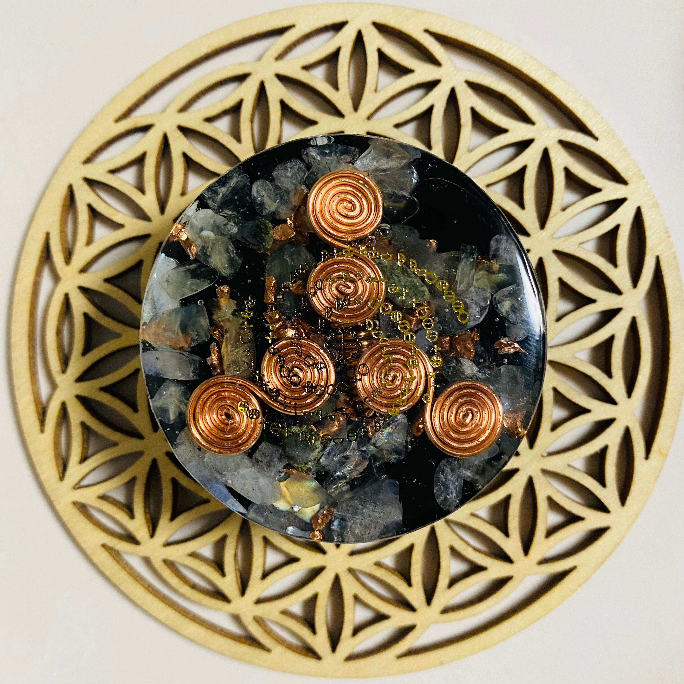 過去世のセッションでこちらのオルゴナイトを土に埋めるとそこが龍脈になると説明を受けた為に記載)