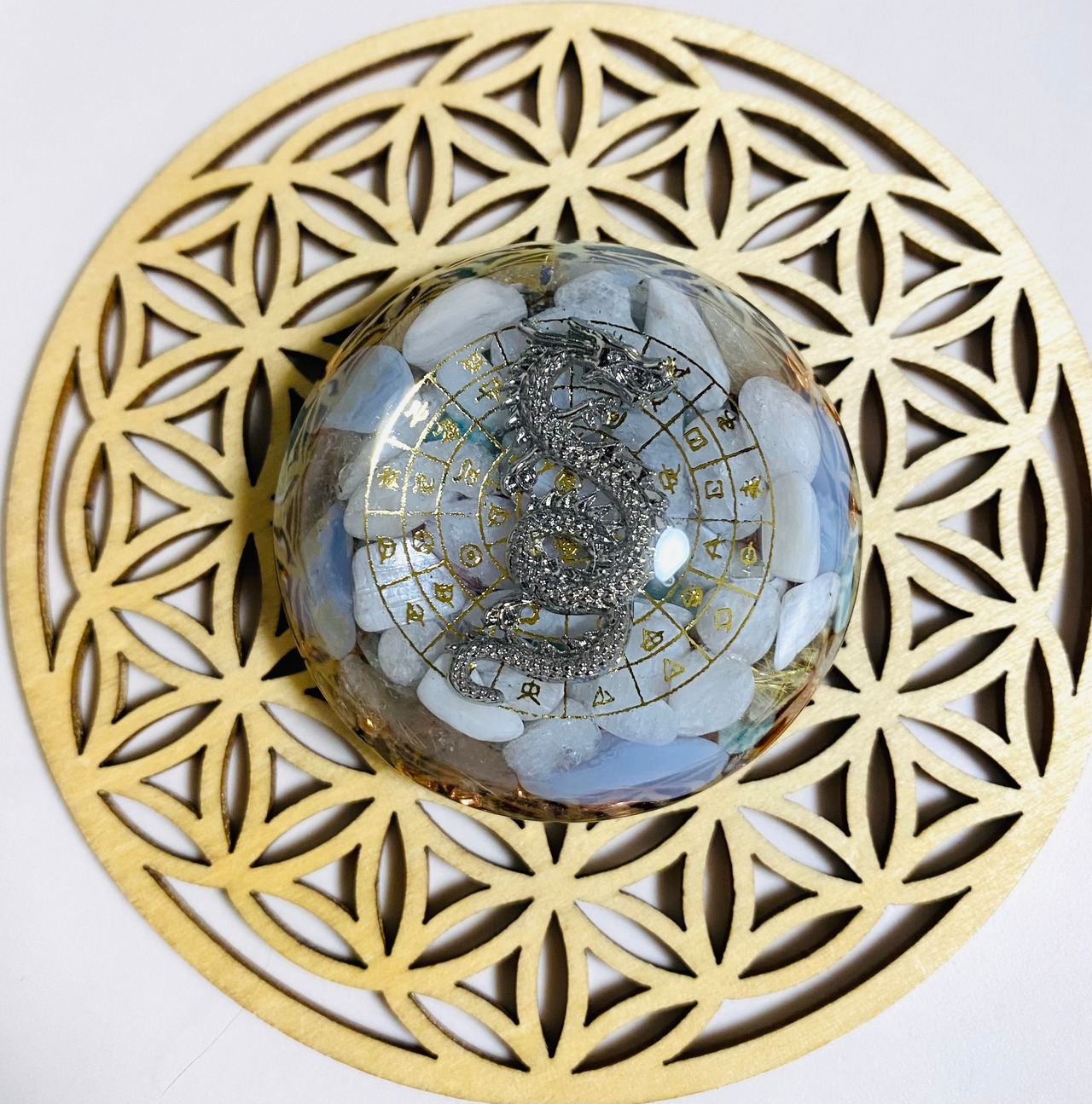 過去世のセッションでこちらのオルゴナイトを土に埋めるとそこが龍脈になると説明を受けた為に記載)