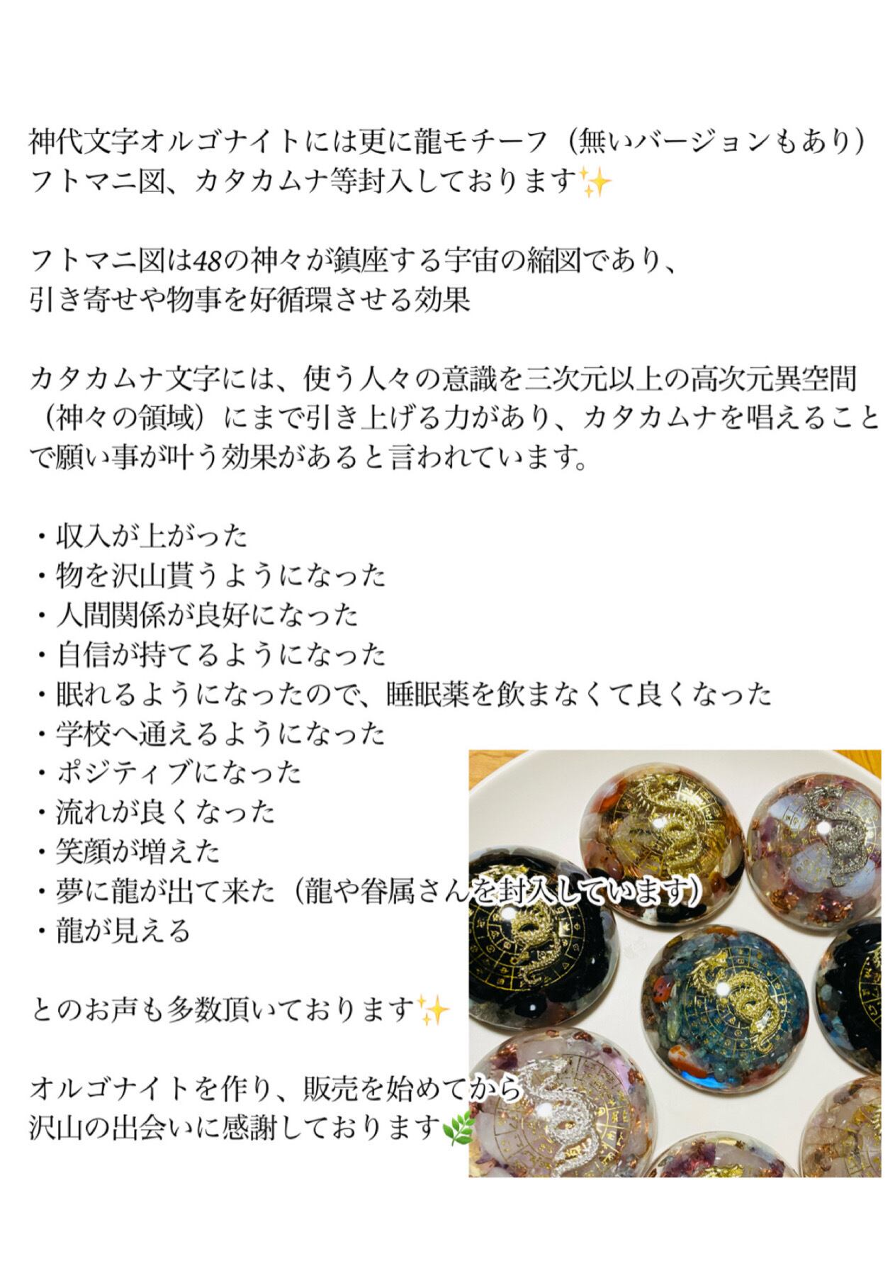 オルゴナイトに、九頭龍さん達、八咫烏、白蛇、眷属等を封入しているとお聞きしました。