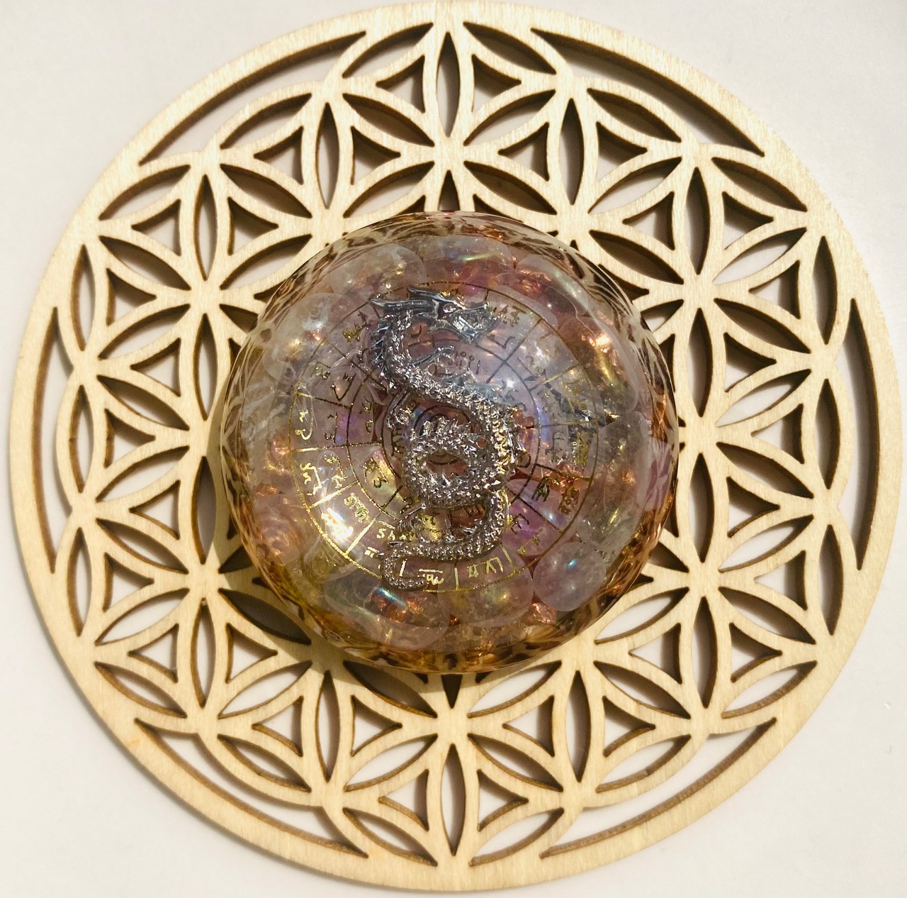 過去世のセッションでこちらのオルゴナイトを土に埋めるとそこが龍脈になると説明を受けた為に記載)