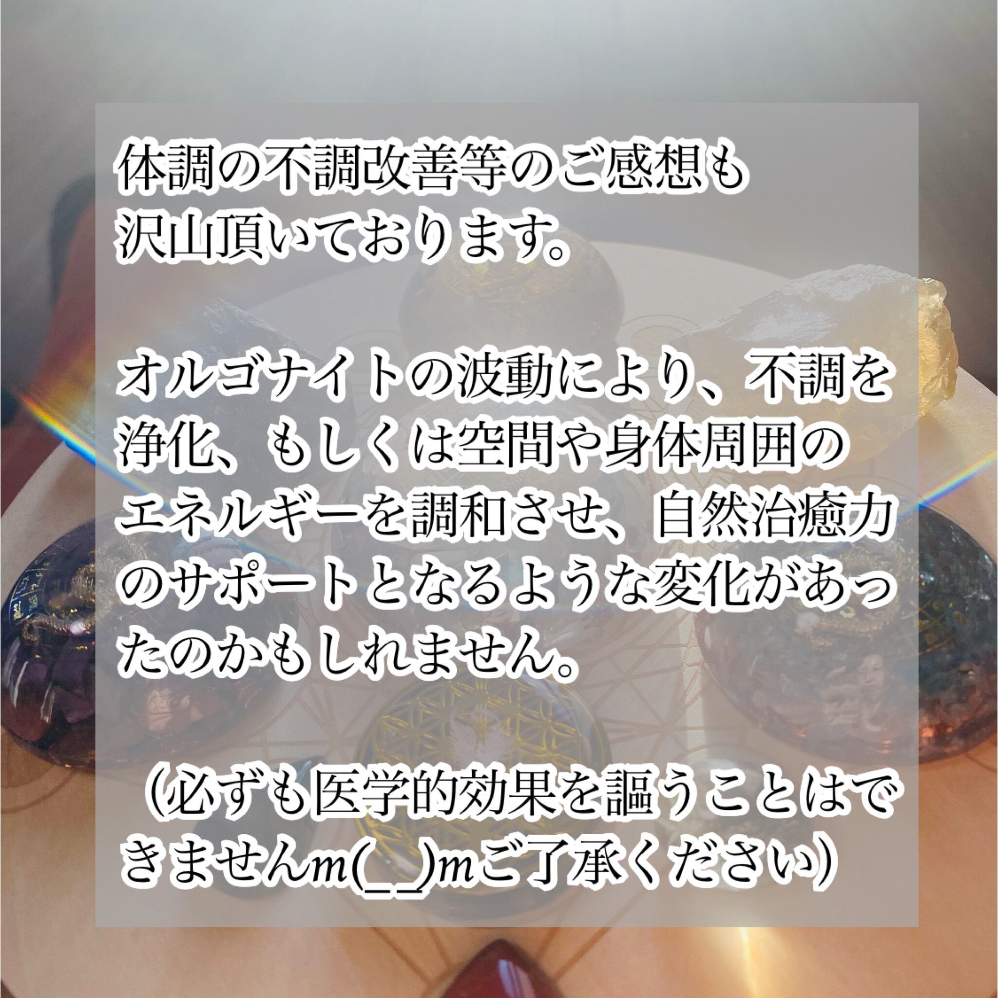 ◯エネルギー体やオーラを調整し、バランスを保つことにより、体、感情、精神、そして霊的な側面が調和することを支援する