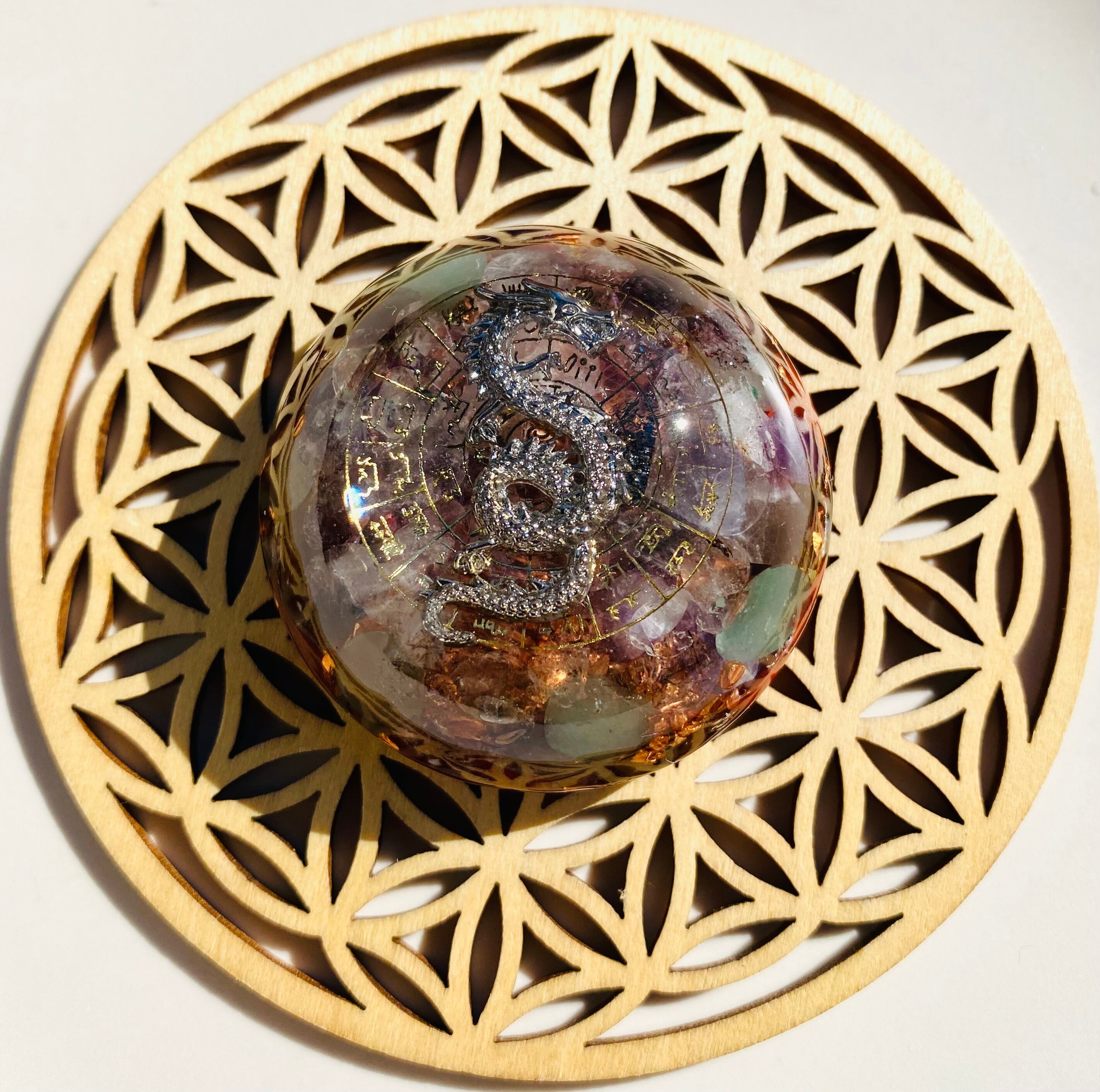 過去世のセッションでこちらのオルゴナイトを土に埋めるとそこが龍脈になると説明を受けた為に記載)