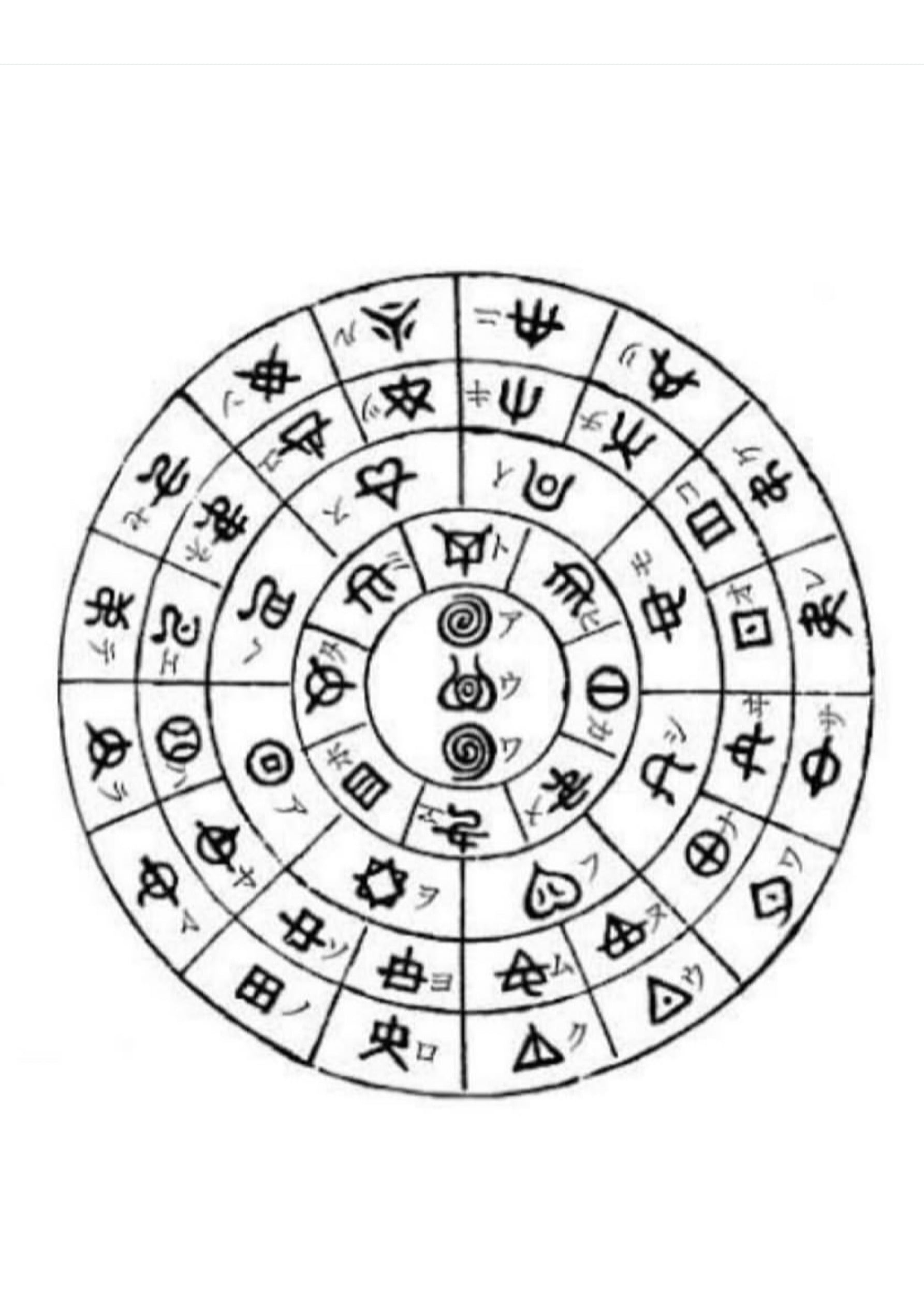 フトマニ図とは、日本語48文字(現代は2文字つかわれなくなったので46文字)を一覧にしたもので、神の座席表とと言われています。