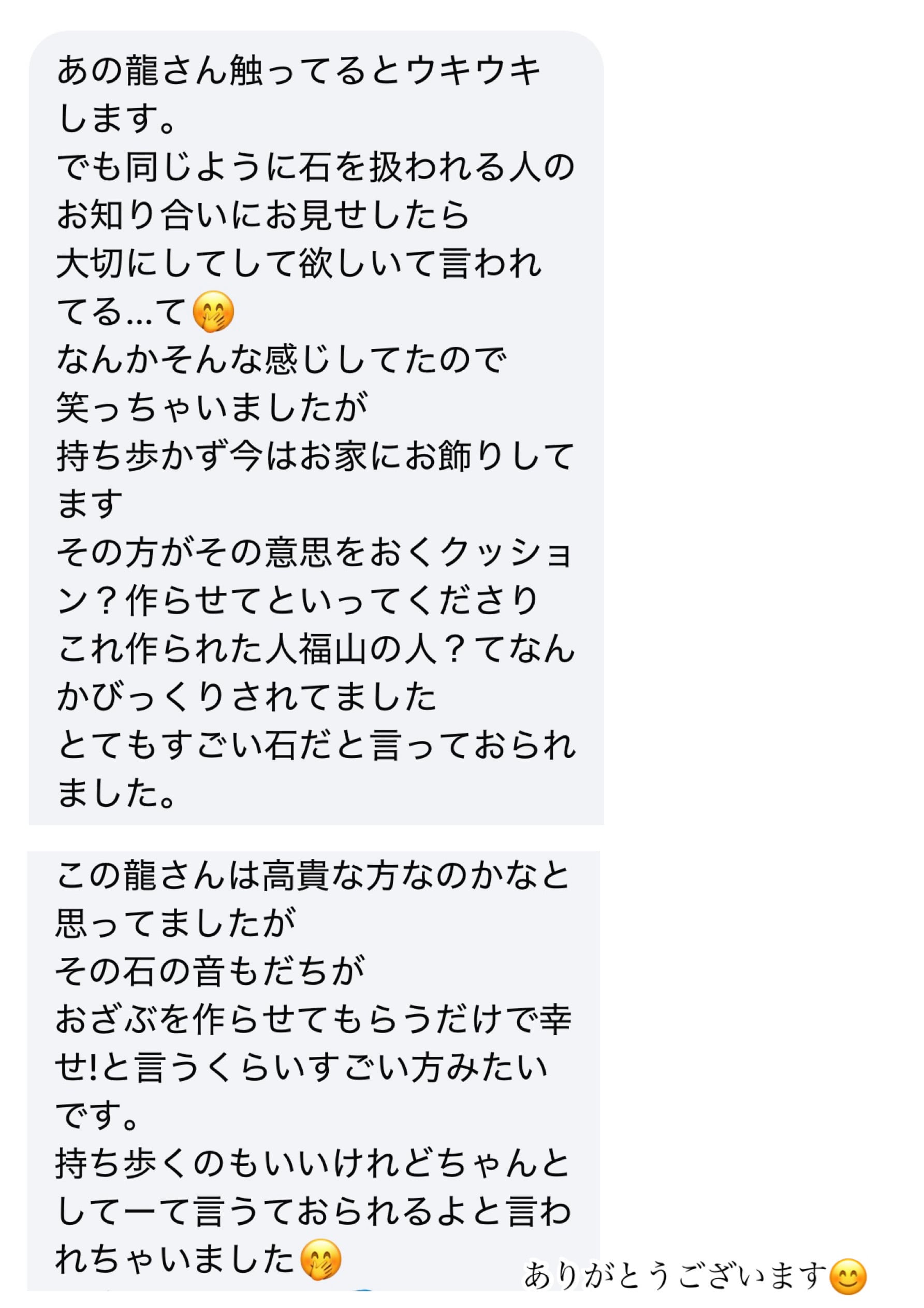 ・神社へ持っていきますとオルゴナイトが元気になりますので、ぜひ連れて行ってみてください。