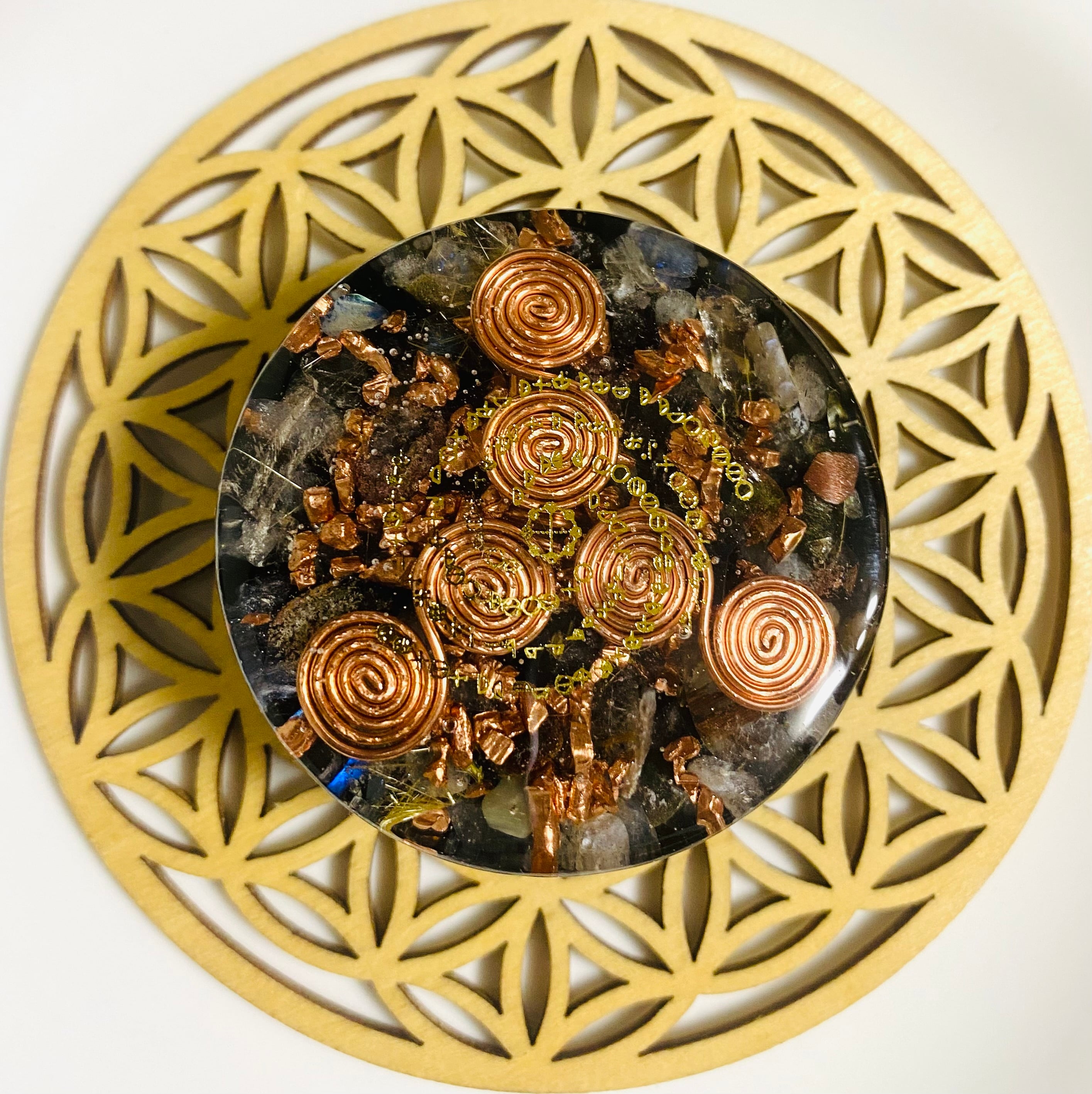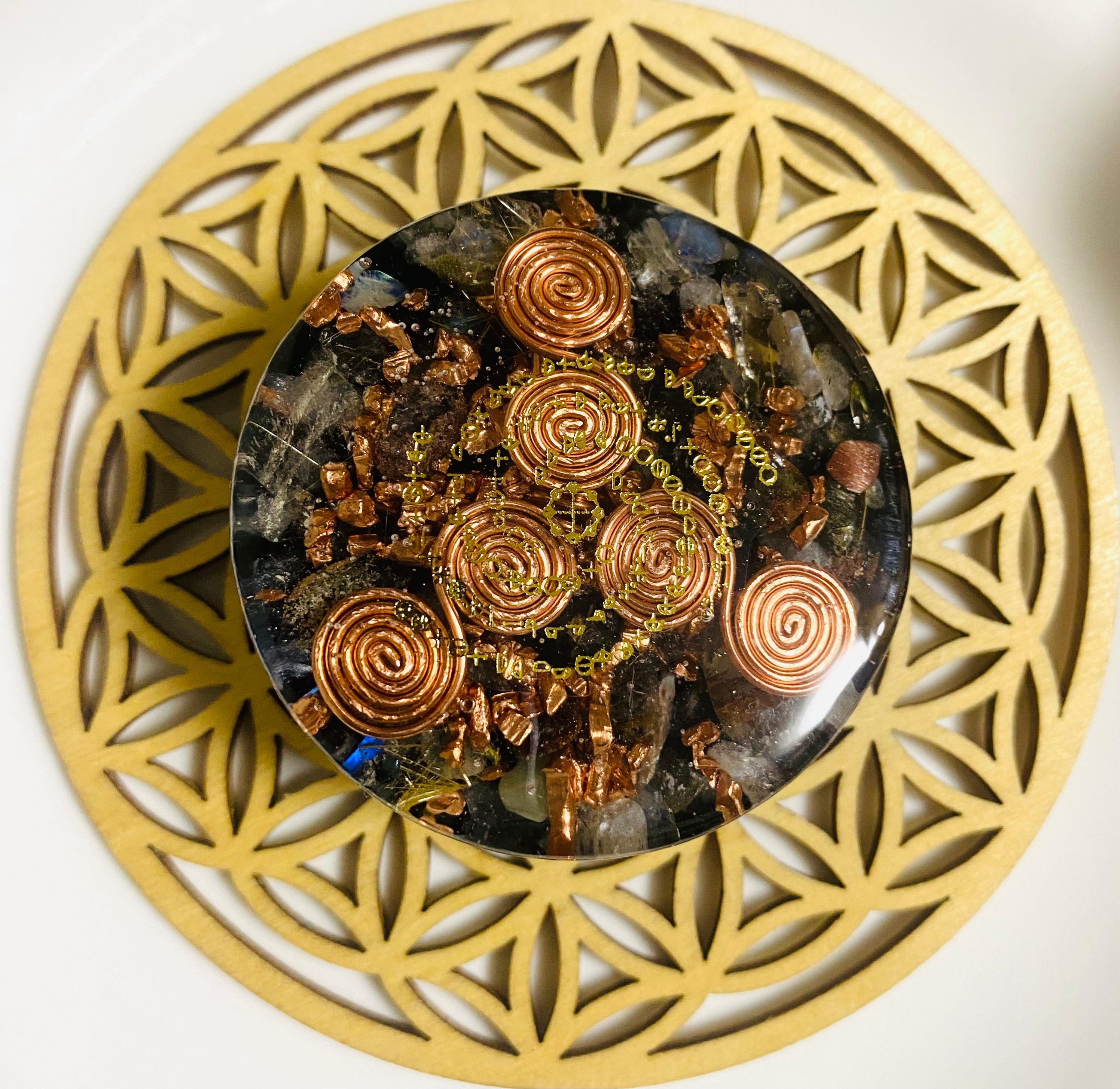 過去世のセッションでこちらのオルゴナイトを土に埋めるとそこが龍脈になると説明を受けた為に記載)