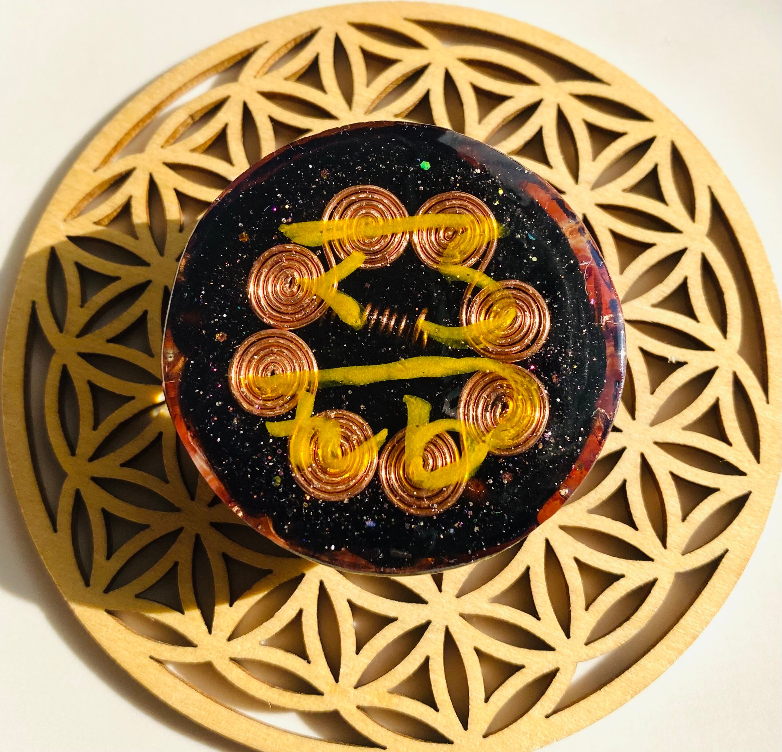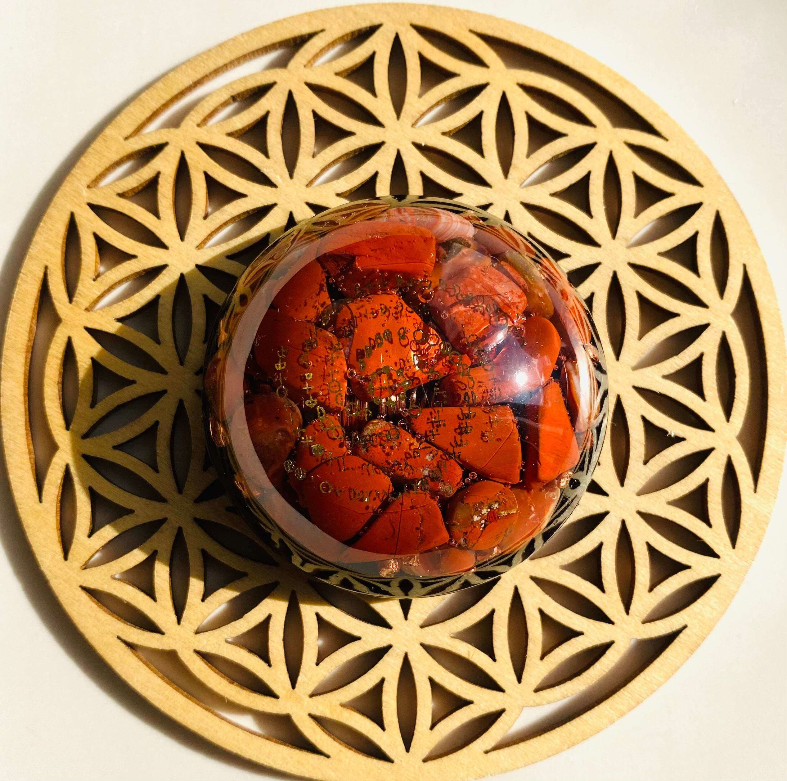 過去世のセッションでこちらのオルゴナイトを土に埋めるとそこが龍脈になると説明を受けた為に