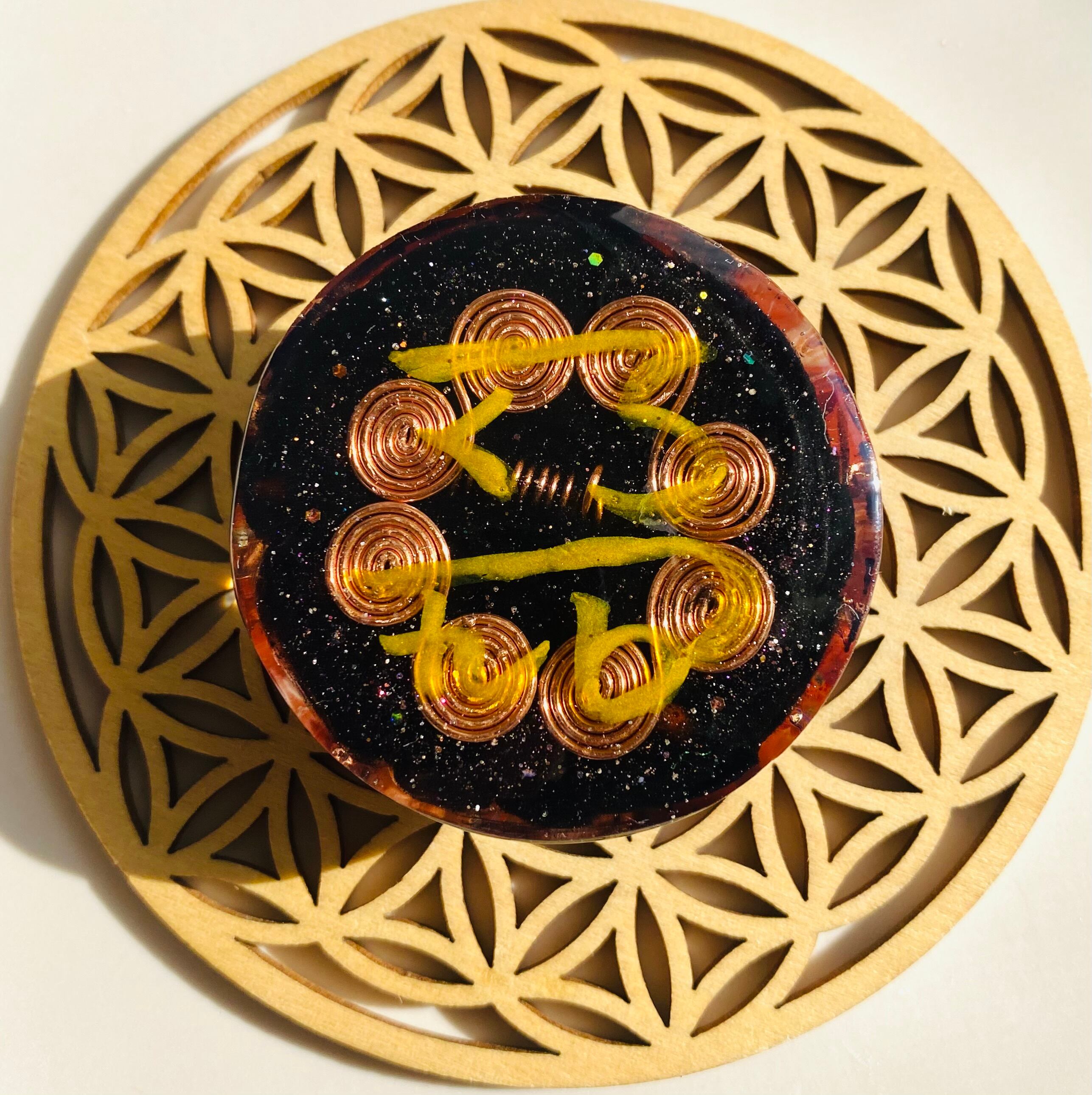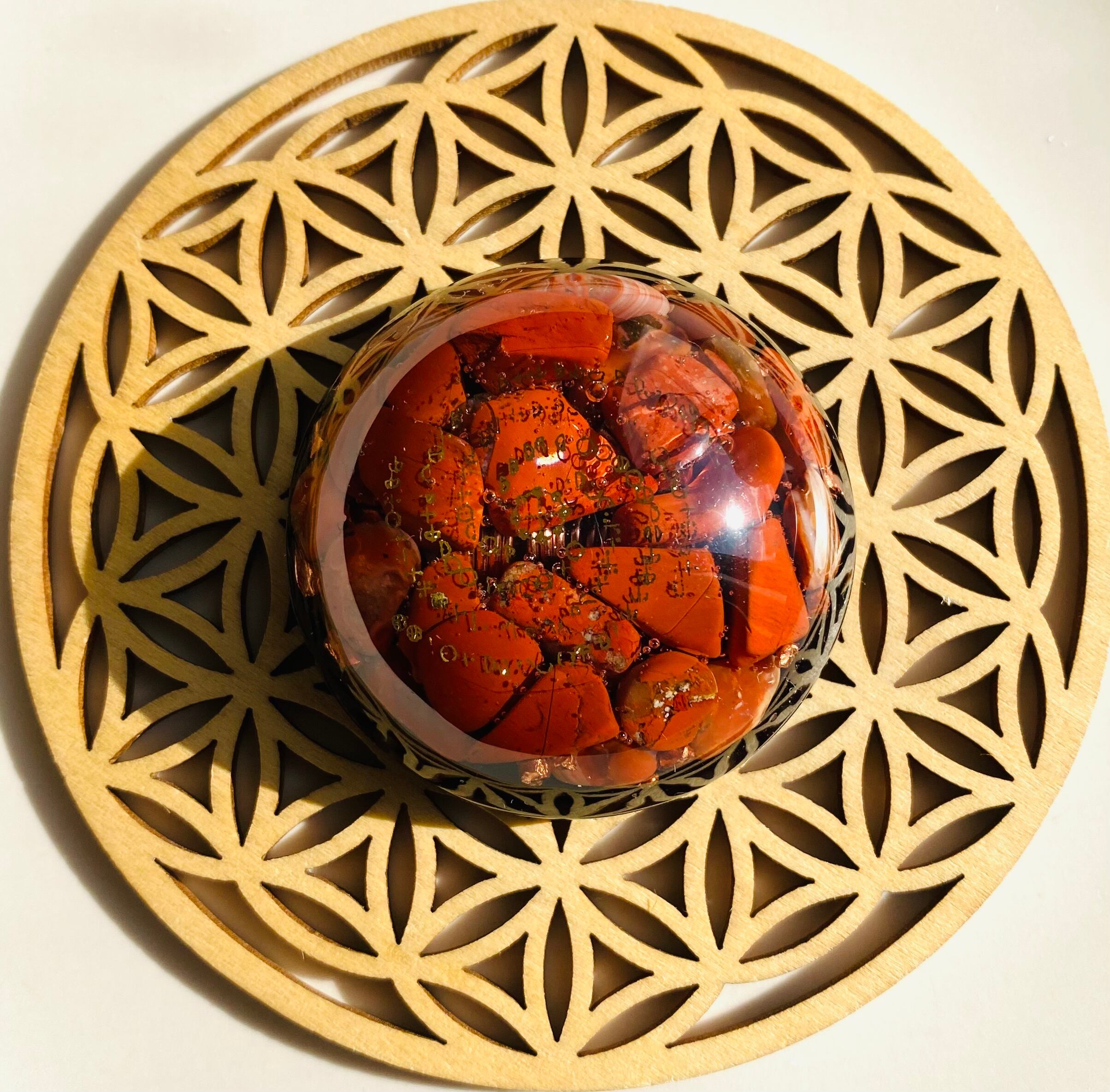 ※余談ですが、同じ組み合わせのオルゴナイトを鼻が溜まって眠りにくい時に眉間においたらスーッと抜けていくのを体感しました。